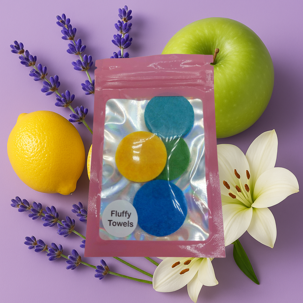 Bring the comforting scent of freshly laundered linens into your home with Fluffy Towels Hoover Discs. This fresh, uplifting fragrance combines crisp lemon and juicy apple with soft lavender and delicate lily - capturing the essence of clean towels still warm from the dryer.