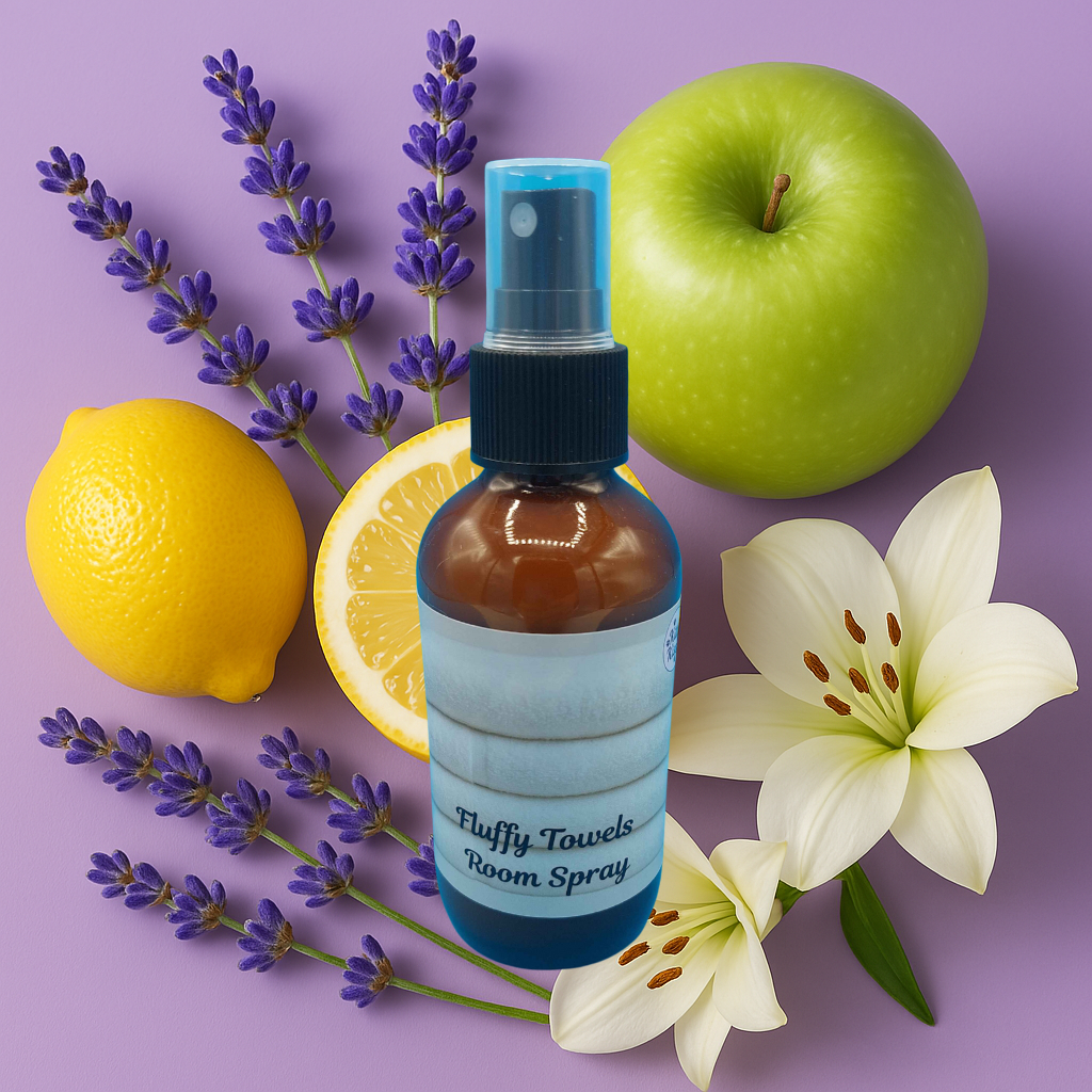 Bring the comforting freshness of just-laundered linens into your home with Fluffy Towels Room Spray. This clean, uplifting fragrance captures the scent of warm towels straight from the dryer, blended with bright notes of lemon and apple, softened by lavender and lily.