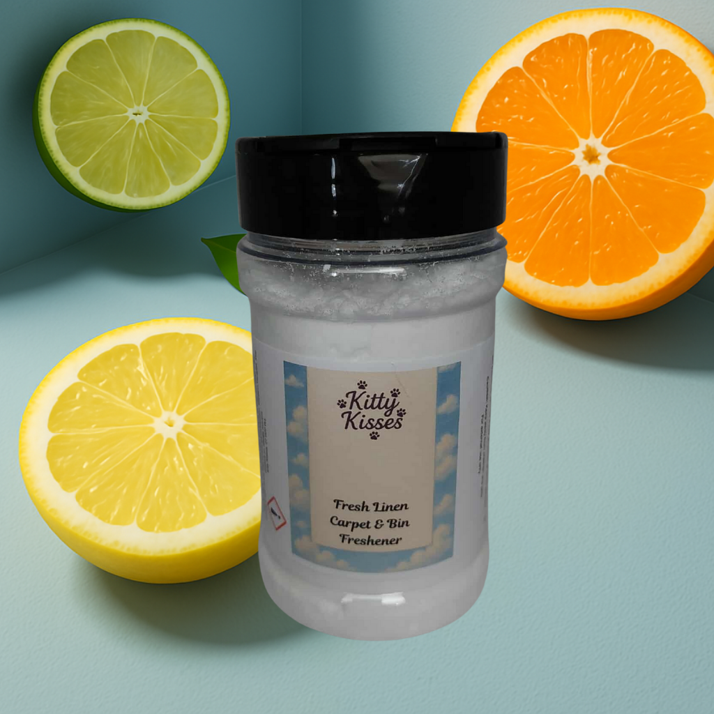 Bring the crisp, uplifting scent of freshly laundered linens into your home with our Fresh Linen Carpet & Bin Freshener. This clean, floral fragrance opens with sparkling citrus notes that awaken the senses, flowing into a soothing heart of soft florals and gentle herbs. A calming base of musk and warm woods grounds the scent, leaving your spaces smelling fresh, airy, and effortlessly clean. Ideal for carpets, bins, and fabrics - refresh your home with the scent of pure comfort.